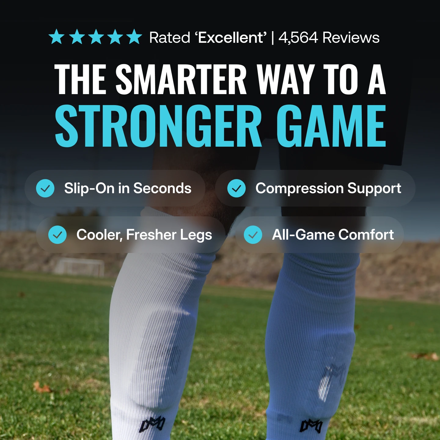 Made from a soft, breathable nylon–spandex blend with moisture-wicking fibers, these sleeves keep legs cool, support circulation, and hold shin guards securely in place without cutting or tape.