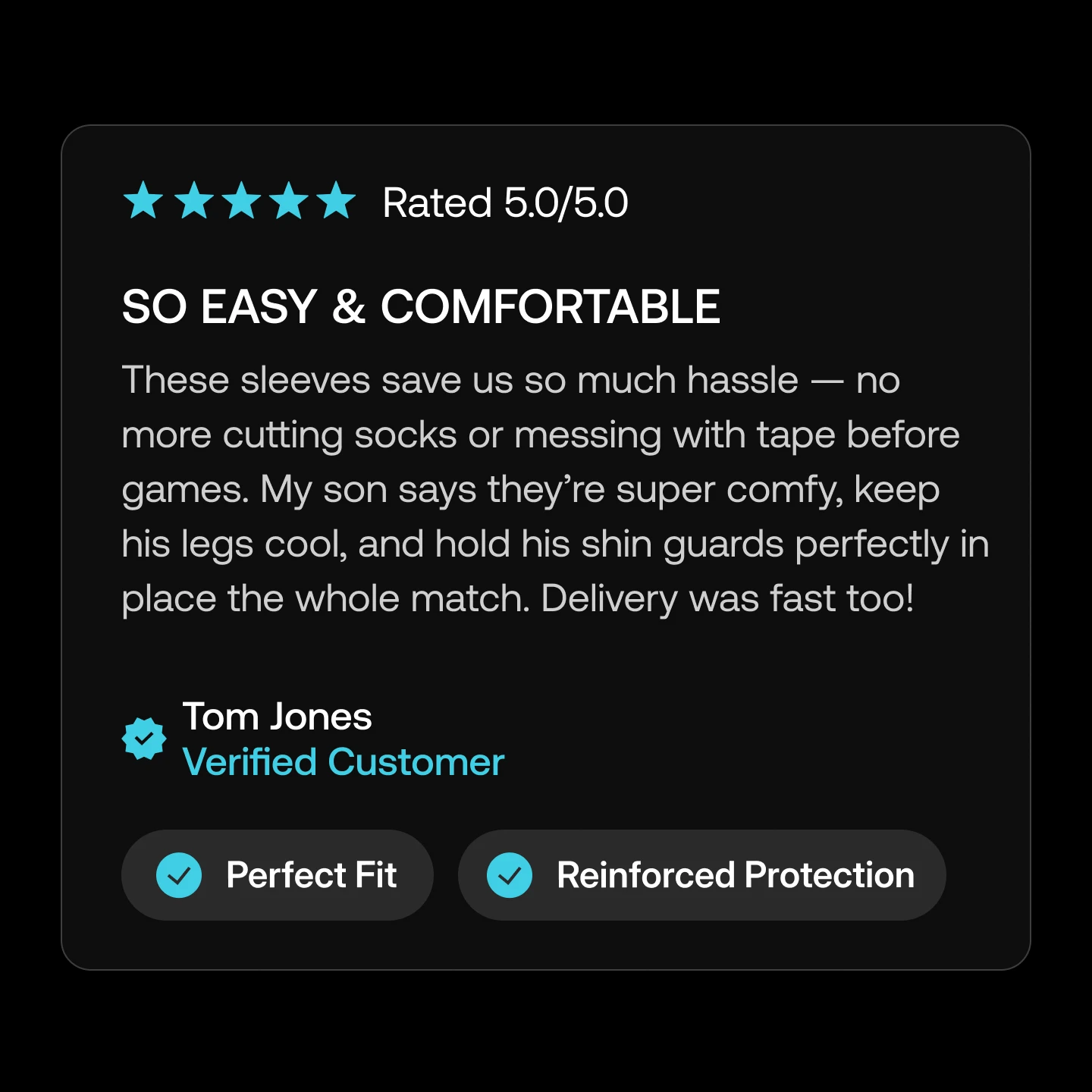 These sleeves are a lifesaver, no more messing around with rolls of tape before every game. My son just slips them on and he’s ready to go. The shin guards stay locked in all match long, and it makes getting ready so much faster.